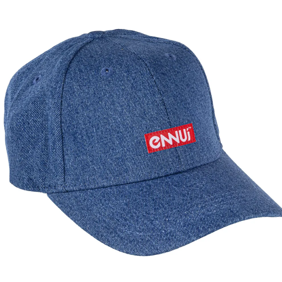 Blijf cool met onze Ennui logo-pet. De Ennui-pet is uitgevoerd in stijlvol blauw denim met een kleine rood-witte logopatch op de voorkant. Een MUST HAVE modeaccessoire voor alle skaters en mensen die van stijlvolle outfits houden.
